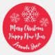 Merry Christmas Script Name Snowflakes White Red Classic Round Sticker