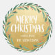 Merry Christmas Script | Wreath | Faux Gold Foil Classic Round Sticker