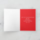 Merry Christmas greetings featuring a scripture from the Bible book of 2 Corinthians 9:15 and decorated with a bright red poinsettia wreath on a white background. On the inside is a coordinating shade of red and text that you can edit to fit your needs.