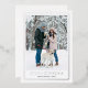 Simply elegant holiday photo card features a portrait picture with a decorative yet minimalistic silver foil border frame of intersecting stripes. Includes "Merry Christmas" wording in beautiful scrolling serif typography. Bonus optional photo and wording can be personalized on the back of the card.