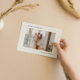 This simple and clean holiday card says "Merry Christmas" in a mix of crisp neutral coloured borders and traditional fonts, including your favourite family photo. The back of the card is a clean open canvas ready for your personalized text.