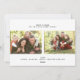 Personalized Merry Christmas Simple Script Holiday Photo Card. Elke Clarke © One photo on the front full bleed with a white script font overlay design. 2 more photos on the back with a place to add your holiday message tp friends and loved ones. Horizontal design.