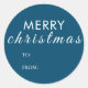 "Merry Christmas" simple custom to and from names gift Classic Round Sticker - Blue.