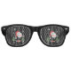 These party sunglasses features the words "Merry Christmas" in a bold print font with green/red letters inside of a Christmas ornament covered with a Santa Claus hat displaying two christmas tree, gifts and a collection of snowflakes in the background with this X-mas day style and theme. These shades have 100% UV protected clear scratch resistant lens with full colour printing and includes a microfiber pouch for storage and cleaning.