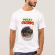 Festive Christmas design featuring a colorful “Merry Christmas” text and a detailed nativity scene inside a snow globe. Includes Mary, Joseph, baby Jesus, angels, shepherds, wise men, and animals under a starry sky