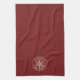 This kitchen towel features a white snowflake on a deep dark red background with a customizable greeting, currently saying "Merry Christmas". Keep as is or edit the greeting right on the product page to make it your own.