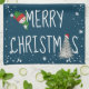 Merry Christmas Snowman On Blue Kitchen Towel
