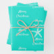 Printed with white starfish pattern in teal background with text 'Merry Christmas'!