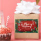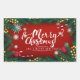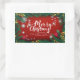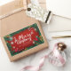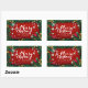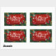 Christmas stickers with a red background, the phrase "Merry Christmas and a Happy New Year" in white letters, pine branches, Christmas lights, snowflakes, candy canes and Christmas balls.
