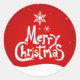 Customizable Christmas stickers with whimsical Merry Christmas typography and snowflakes forming a Christmas tree on red and white. Glittering stars and dunes of snow decorate these modern and fun Holiday stickers.