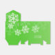 Stylish and modern festive pattern featuring a green background and elegant, white snowflakes and Merry Christmas wishes. Easily personalizable with your family name. The clean, geometric snowflake design brings a touch of winter charm, adding sophistication and a festive flair. Perfect for wrapping gifts in a memorable and eye-catching way, filling with christmas treats during your modern style Christmas party. Excellent for cookie exchange. This design seamlessly blend modern aesthetics with holiday spirit, making it an ideal choice for elegant holiday celebration.