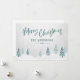 Rustic country holiday flat cards with "Merry Christmas" in a handwritten style along with your personalized family name or names and the year, all in pine green in vintage typography. A beautiful scenic view of trees and winter snow in watercolor style artwork highlights the front of the card. The back of the card features text space for your personal holiday message or can be left blank for you to handwrite one if needed. Available in high quality printed card stock for standard mailing or a downloadable, digital format for quick and easy sending via text message, email or even self print.