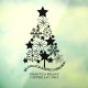 Christmas Tree window cling lettered with "we wish you a merry christmas". The stylized tree is made up of snowflakes, stars and flowers with the festive greeting at the base. The template is set up for you to customize the design with your company name or marketing message. To change any of the colours, click "customize further".