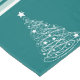 Merry Christmas illustration with Christmas tree and snowflakes decoration on red, white, blue and turquoise striped background