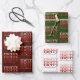 Merry Christmas Text Greeting Red & Green Pattern Wrapping Paper Sheet