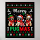 Merry Christmas Three Santa Pugs Colourful Sweater Poster
