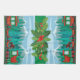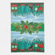 Merry Christmas Train with a little Scotty Dog riding along on this holiday kitchen towel - green background.