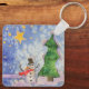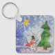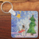 Merry Christmas Tree And Frosty Snowman Watercolor Keychain