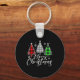 Merry Christmas Tree Buffalo Plaid Red White Green Keychain