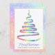 This corporate greeting card features ribbon Christmas tree in rainbow colours with white snowflakes. Text "Merry Christmas" and personalized with your company name. Back features custom message and your company logo. Perfect for sending season's greetings to clients, employees and everyone on your list.