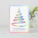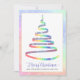 This corporate greeting card features ribbon Christmas tree in rainbow colours with white snowflakes. Text "Merry Christmas" and personalized with your company name. Back features custom message and your company logo. Perfect for sending season's greetings to clients, employees and everyone on your list.