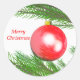 Stickers with my image of a pretty red Christmas ball hanging on a Christmas tree. Text says "Merry Christmas".