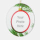 A pretty Christmas ball hanging on a Christmas tree makes a festive frame for your holiday photo!
