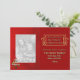 Festive red and gold glitter look 2 photo holiday photo card template- Customized photo greeting card with holiday photo templates for two favourite family photos insert. Space for a large family photo on the left front framed by a red evergreen Christmas tree shadow with a whimsical Christmas tree in white, green and red that reads A Very Merry Christmas placed in front of the family photo. Merry Christmas and Best Wishes for a Happy New Year is printed on the right with a gold scrolls frame in gold glitter look letters with a black shadow to make the season's greeting stand out. Against a dark red background. From our home to yours holiday text template for family name, family members, and the holiday year. Any of the text may be changed of course. Coordinating red evergreen tree shadow background on the back, too, has another large Christmas photo template and cute Christmas tree. All-occasion winter design is great for many winter special occasions, not just Christmas greeting cards- Christmas caroling, Christmas party, winter party, and more. We also have this modern and bright holiday design on other office supplies and gifts. Just visit our online Zazzle shop for lots of other winter, holiday and Christmas designs. Upload your own family photos and enter your own personal information for personalized Christmas photo cards. Change the text colour, font style, or wording if you like.