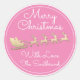 Merry Christmas Tree Name Santa Sleigh Deer Pink Classic Round Sticker