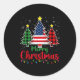 Merry Christmas Tree Plaid Us Flag Snowflake Xmas Classic Round Sticker