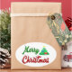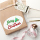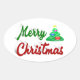 Merry Christmas Tree red green script Oval Sticker