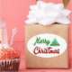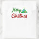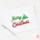 Stickers with Merry Christmas in 3D green and red text and a Christmas tree. Stickers are available in several shapes.