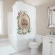 Decorate your bathroom for the holidays with this rustic holiday shower curtain! It features a tree cookie illustration with the words "Merry Christmas" in the middle. Winter floral elements surround the tree slice in white, red and green.