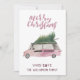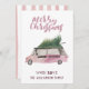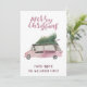 Fun plum colour and green watercolor Merry Christmas Card features a holiday scene with a tree atop a van, "With Love" in an ornament topography. Easily customize with name.pl