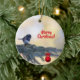 Merry Christmas Tree with a Snowbird on a Ceramic Ornament