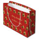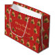 Merry Christmas Tree with Candles Elegant Gold Faux Gold Brown on Christmas Red Background Christmas Trees with Gift Tag Label Design, you can change the custom text Merry Christmas! With Love, Santa with your name and text, Large Glossy Gift Bag