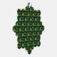 Merry Christmas appears in a faux (not foil) gold script on this very dark green and gold ornament. Faux gold Christmas trees make a pattern with the text. You can edit the text if desired.