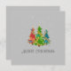 Vibrant colored letters, trees, holly and cancy canes in a cheerful message suitable for a non-religious holiday greeting. I especially liked it on the black background which made the design pop.