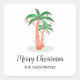 These Merry Christmas stickers are decorated with a tropical palm tree covered in lights and baubles.