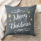 Merry Christmas Typography Slate Grey White Throw Pillow
