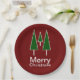White Merry Christmas typography.  Christmas trees in dark green. Great for all your holiday parties.