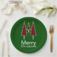 White Merry Christmas typography. Christmas trees in dark green. Great for all your holiday parties.