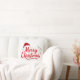 Merry Christmas Typography with Santa Hat and Snow Throw Pillow