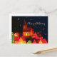 Send Christmas wishes to family, friends and business acquaintances with the Merry Christmas Village post card. The card features a drawing of a European village, showing the skyline of sharp roofs, above which you can see a church and its steeple against a winter starry sky. The colours are dark blue (sky), white stars, with the buildings and roofs done in warm golds, oranges, reds, green and brown.