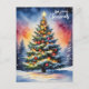 Merry Christmas Watercolor Christmas Tree Holiday Postcard