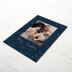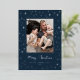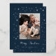 Illuminate your holiday greetings with this enchanting and modern photo card, capturing the magic of a starry night! The deep navy blue background is covered in a dazzling, all-over pattern of twinkling stars and sparks, all beautifully accented in bright silver foil. Your favorite family picture is elegantly framed, while the handwritten-style "Merry Christmas" script glows in brilliant silver foil, giving your card a truly festive and shimmering finish.