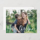 This modern holiday photo card features white calligraphy script over a full-bleed photo. This design accommodates a single, horizontal  photo on the front of the card. On the reverse side you will find plenty of space to write a personal greeting. Postcards are a easy and economical way to send holiday cards to everyone on your list!