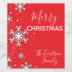 Personalized Christmas wine label design featuring white stylized snowflakes on red background. The text is fully customizable.