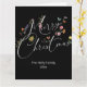 A Merry Christmas Holiday folded greeting card with a wild flowers, butterfly and black modern design.
