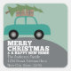 A modern Holiday greeting with an illustration of a car moving gifts and a tree.